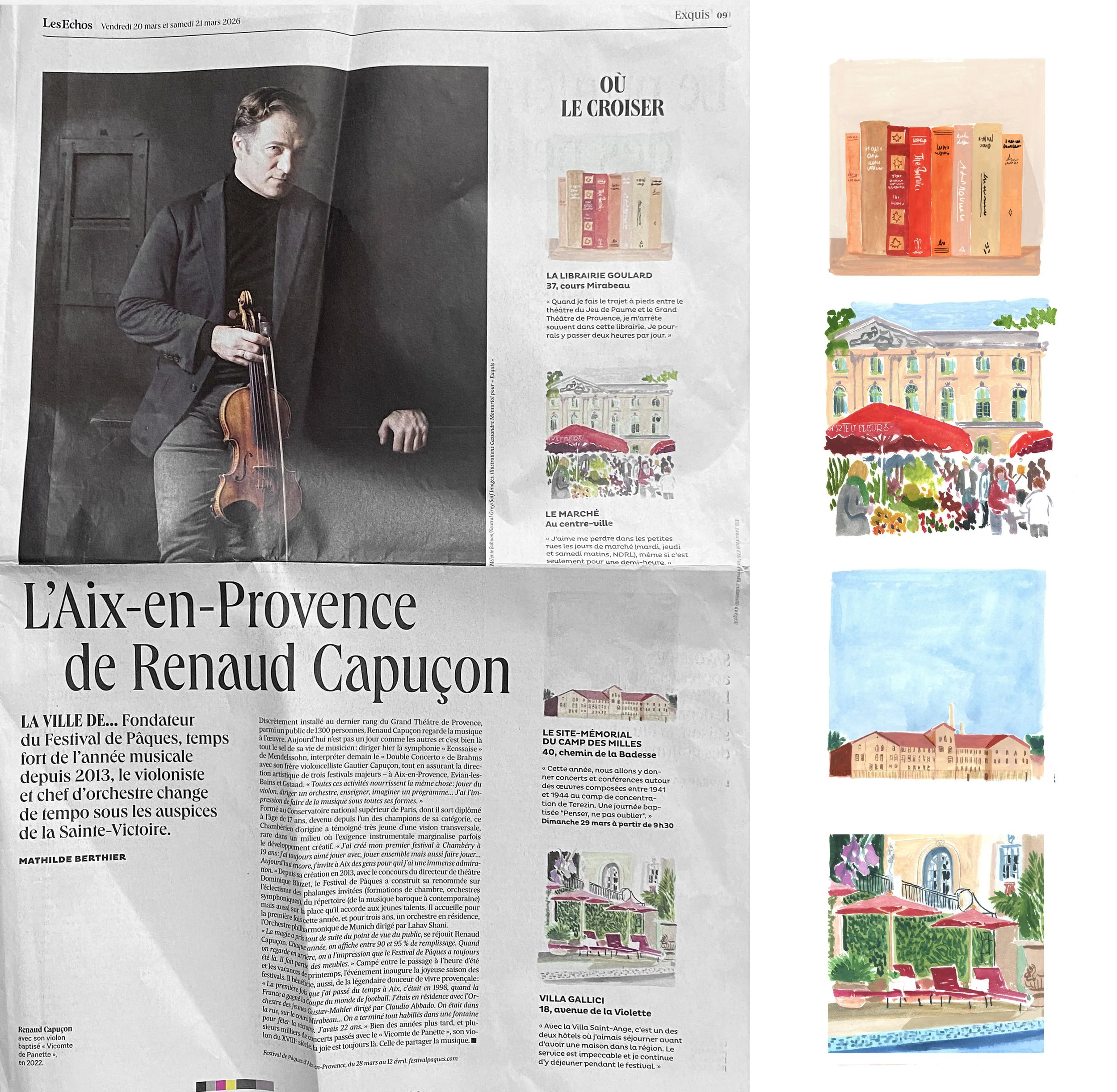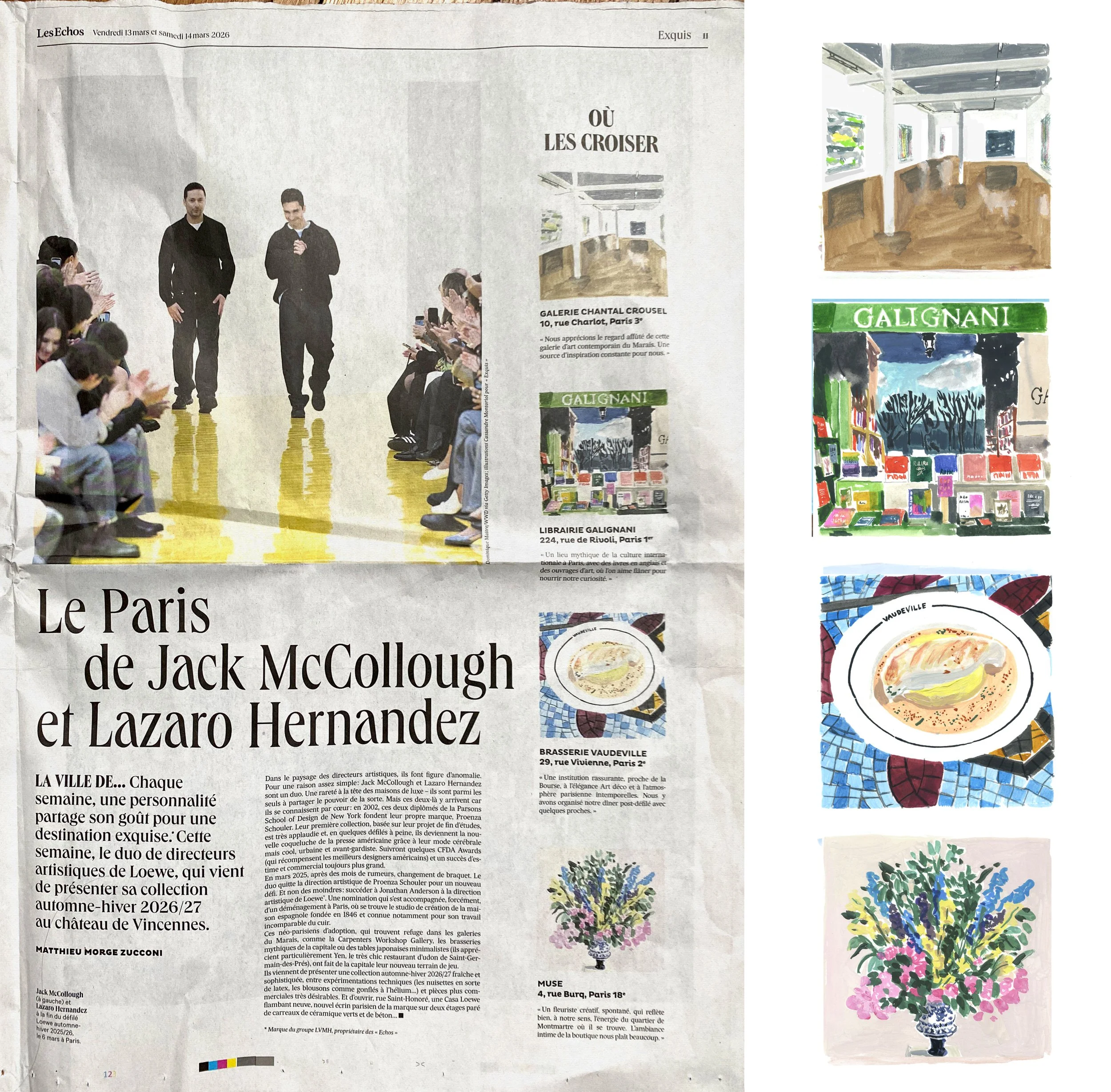 Nouvelle collaboration avec LES ECHOS Week-end pour le Cahier EXQUIS / Chaque semaine un invité et ses adresses illustrées