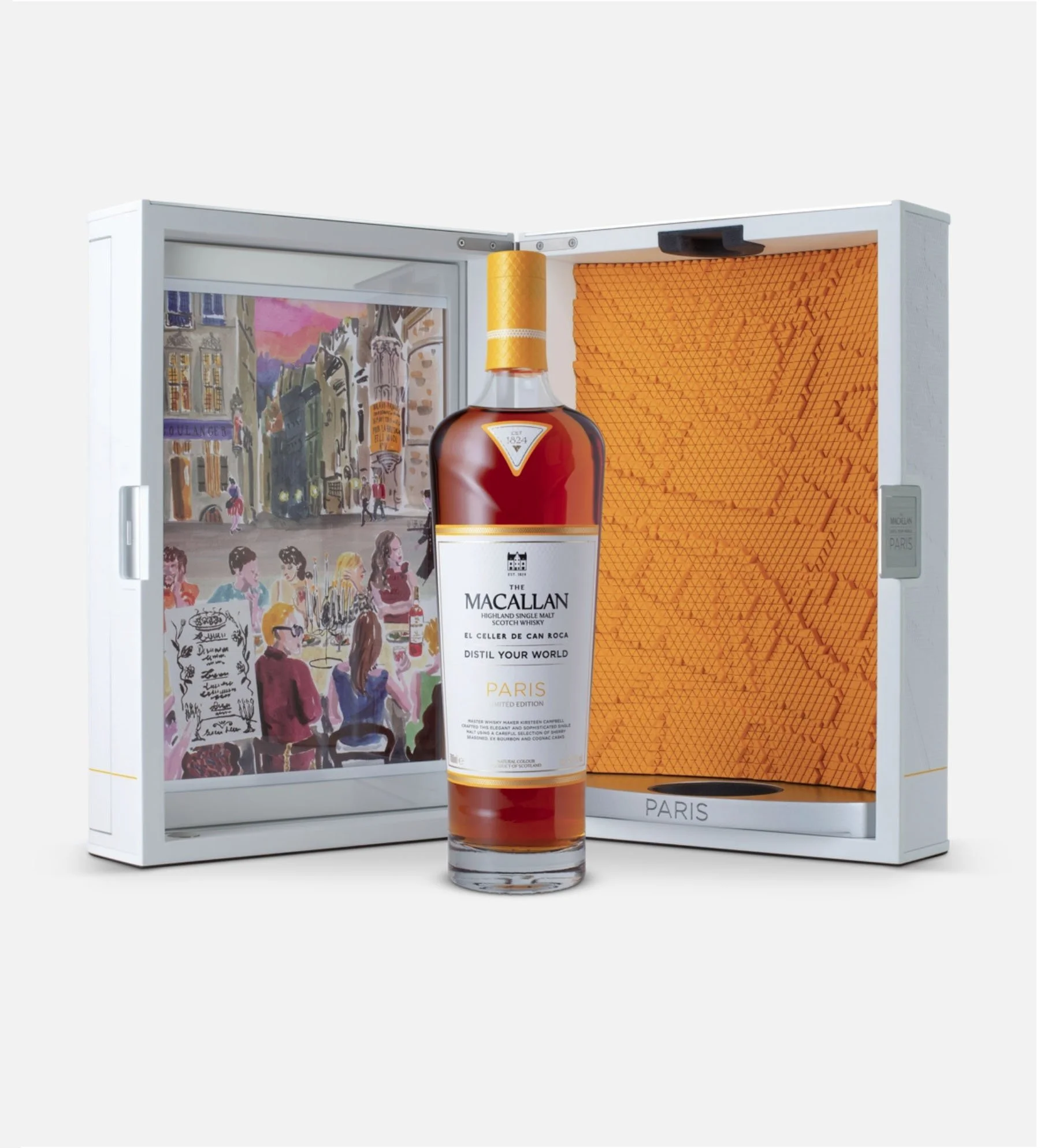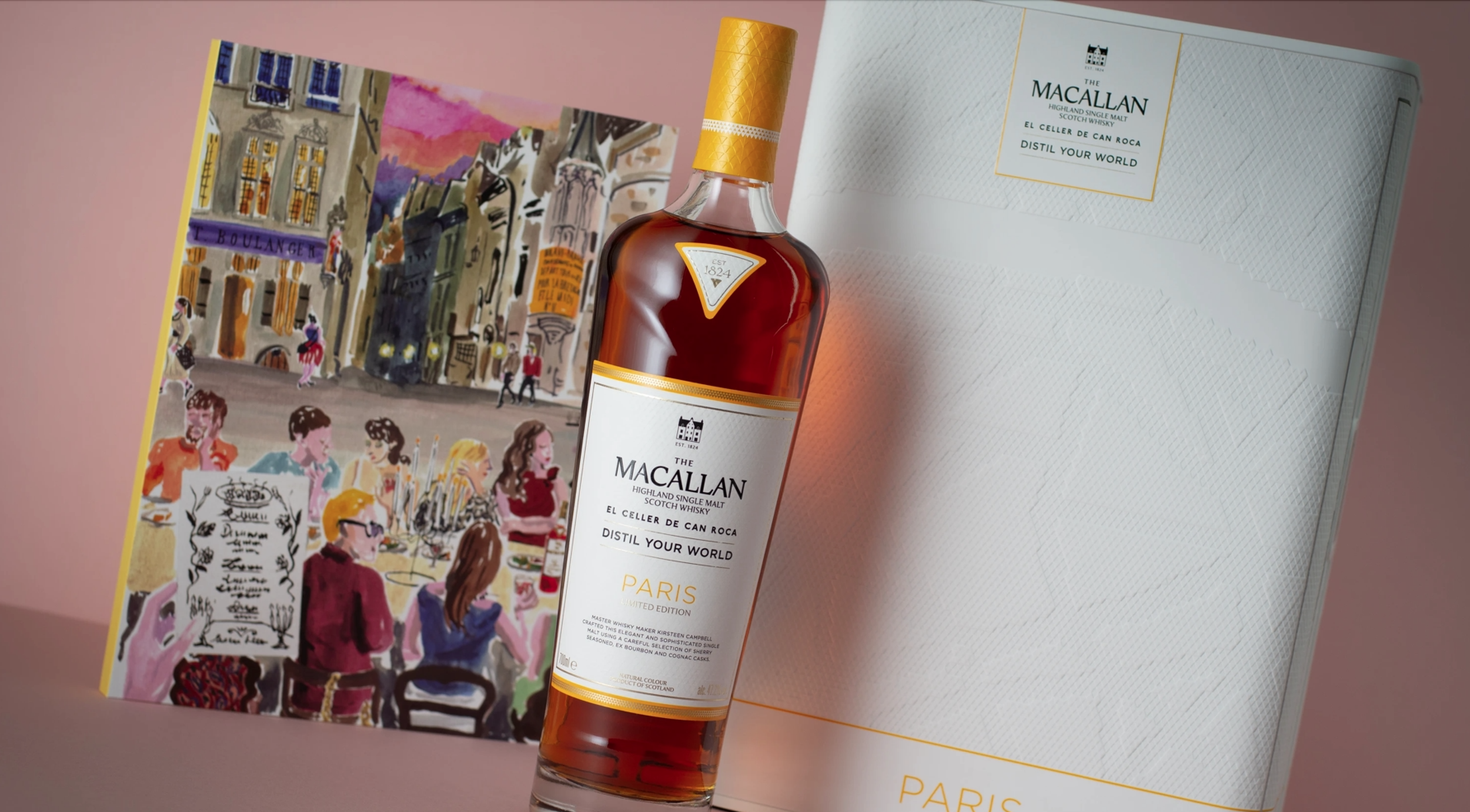 Original artwork created for THE MACALLAN new whisky set, part of their 'Distill Your World' collection,“explores the essence of Paris through a journey of flavour, craft and culture. A remarkable single malt and documentary inspired by the elegance, innovation and gastronomic heritage of "l´art de la table" of the city of lights.” /